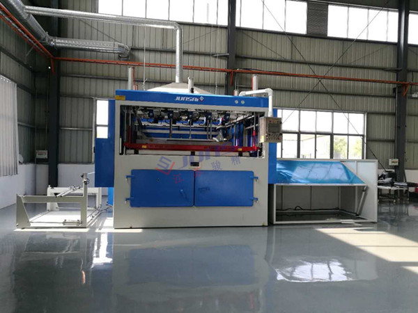 5.    自動厚板吸塑機(jī)。工藝步驟:吸盤上料、加熱、真空吸塑成型、自動取料、雕刻機(jī)分切