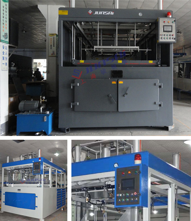 特性:1. 皮卡箱寶厚片吸塑設備配置高。加熱爐采用紅外線陶瓷發(fā)熱磚上下加熱,。采用溫控儀一對一控制發(fā)熱磚,使爐區(qū)內(nèi)溫度到時候加均勻。成型部分由密封氣箱,壓片框,上模組件下模組件組成,成型中下模采用真空成型,同時下模配有平衡同步器,確保模架運行平穩(wěn)。配有完整真空系統(tǒng),包括真空箱,真空泵,真空儲存罐,真空閥,反吹脫模裝置,二次真空和延遲真空。